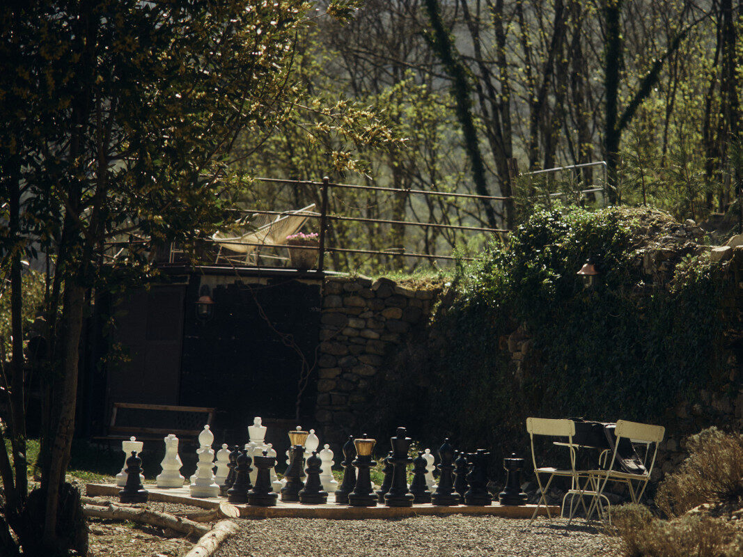Tucked beside the terrace lies a hidden corner framed by an antique stone wall, where soft, atmospheric lighting dances across a life-sized chessboard. This enchanting space invites you to slow down, take a seat, challenge your companion to a game, or soak in the mood. As shadows play over the board and the warm evening air lingers, the setting feels almost timeless, a place where conversation, strategy, and a glass of wine come together in style.
